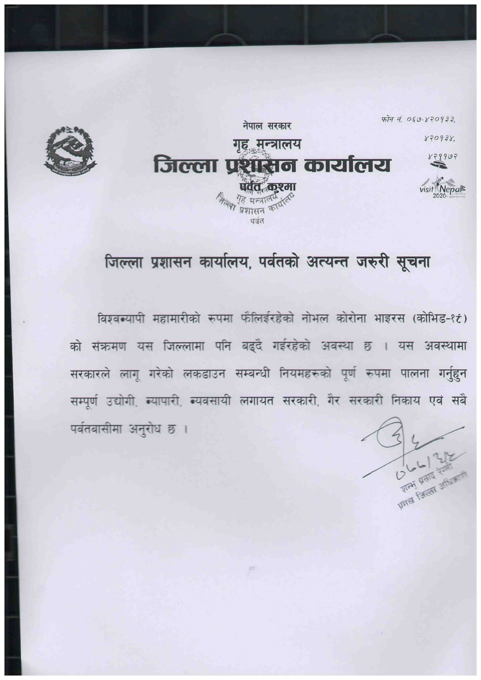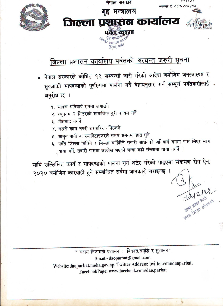 तस्बिर : कोभिड-२०१९ सम्बन्धी जिल्ला प्रशासन कार्यालयको जरुरी सूचना